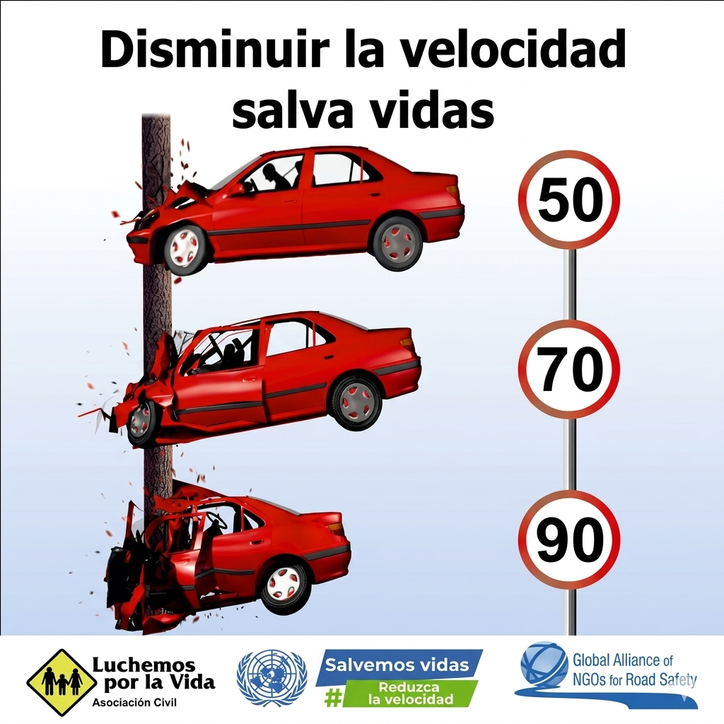 ¡Al fin vamos de minivacaciones! Invertí media o una hora más de tiempo en la seguridad de tu familia, no sobrepases los 90/100 Km por hora, ni aún donde esté permitido. Disminuir 10 Km/h la velocidad habitual de circulación aumentará notablemente la seguridad. Desde Luchemos te pedimos que leas estos datos en la página de Luchemos para que puedas disfrutar en familia. ¡Disminuí la velocidad!