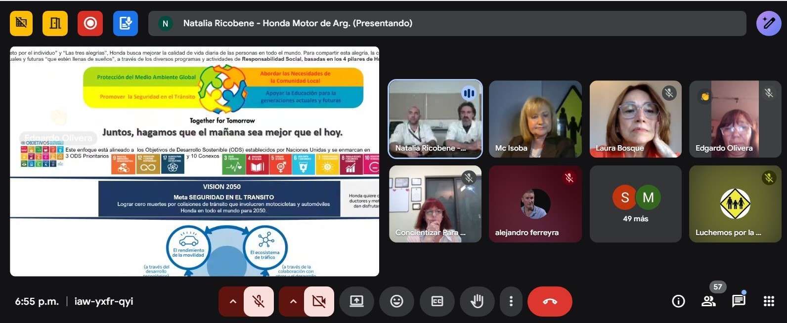 Honda Motor Argentina, represented by Gastón Britos, Deputy Manager of Corporate Relations, Natalia Ricobene (CSR), and Damián Paradisi (motorcycle technician), discussed their "Zero Deaths" vision as a corporate goal for 2050 for all its products. To achieve this, while contributing free educational workshops for young people and primary and secondary schools students, they are continuously developing technological improvements in their high-, mid-, and low-range motorcycles to reduce accidents: